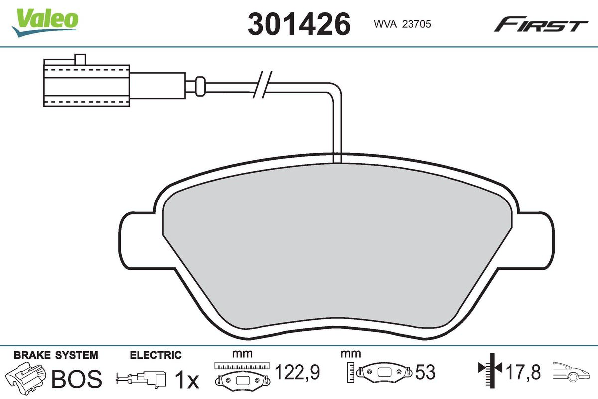 Serie È™asiu (VIN)până la: 0006445Partea de montare: punte fataSistem de frânare: BOSCH ->Latime [mm]: 123Înaltime [mm]: 53 ->Grosime [mm]: 17,8Numar WVA: 23705Contact indicator uzura: inclusiv contact avertizare uzuraNumărul indicatorilor de uzură [per axă]: 1 ->Lungime contact avertizare [mm]: 215Mod de operare: electricArticol completare/Info suplimentar 2: cu tabla anti scartaitAprobare: ECE-R90 ->Greutate [kg]: 1,65