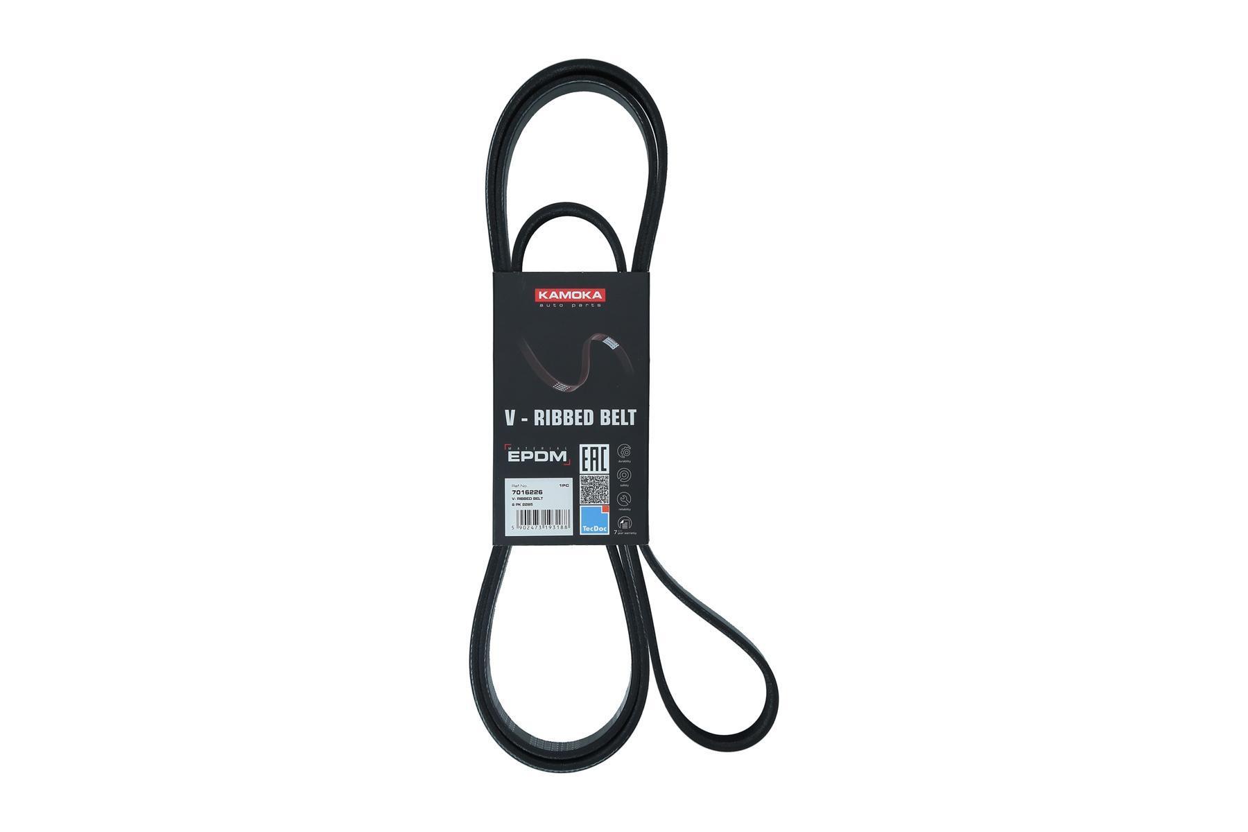Curea transmisie cu caneluri KAMOKA 7016226; Agregate angrenate: Alternator; Latime [mm]: 21; Lungime [mm]: 2285; Material: EPDM (etilen propilen dienă cauciuc); Numar nervuri: 6