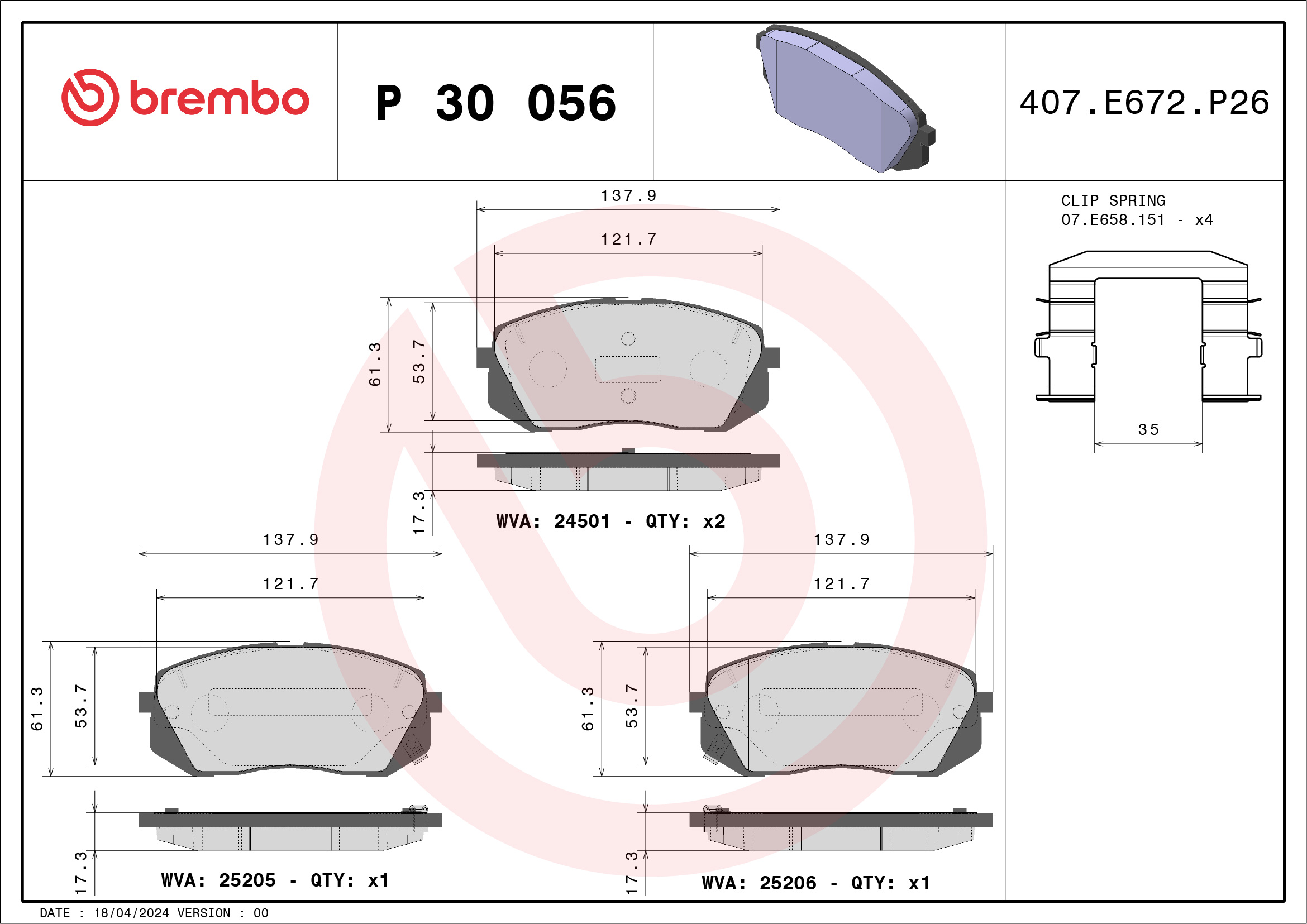 Placute frana KIA CEED (JD) 1.6 GT benzina 204 cai BREMBO P 30 056X