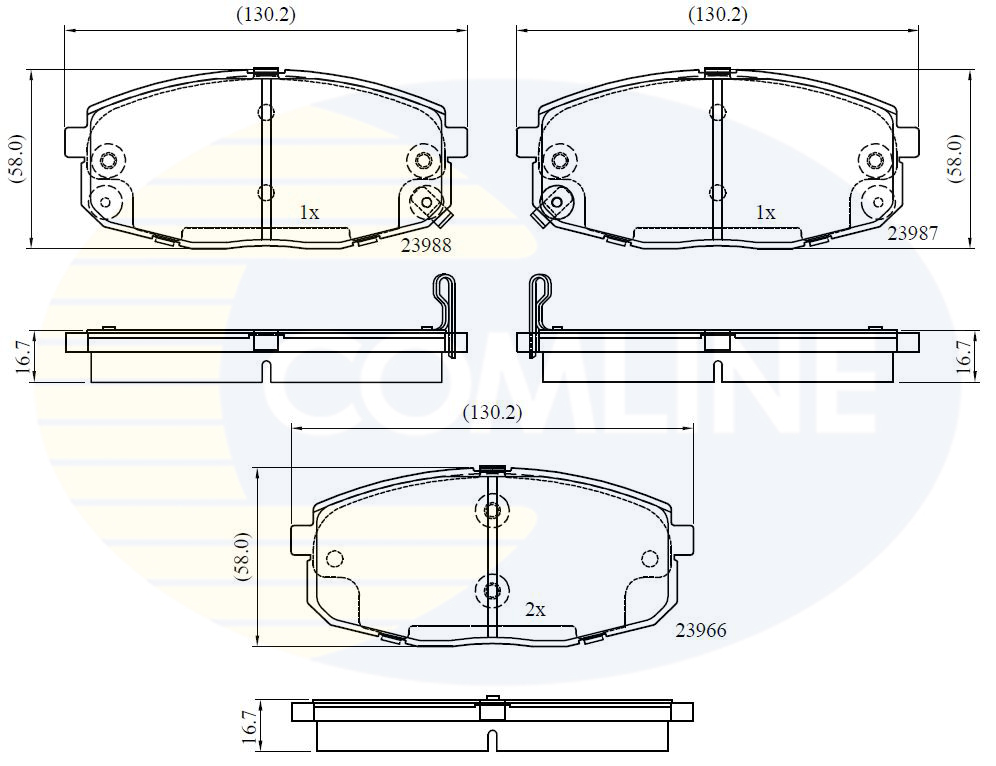 Partea de montare: punte fata ->Grosime [mm]: 16,8 ->Lungime [mm]: 130,2 ->Latime [mm]: 58Contact indicator uzura: cu avertizare acustica uzuraPlacuta de frana: fara muchii tesiteSistem de frânare: MandoNumar WVA: 23966, 23987, 23988