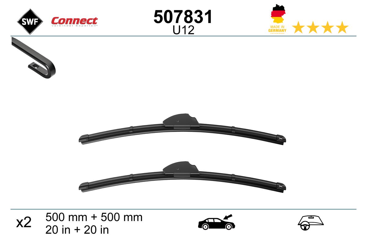 Vehicul cu volan pe stânga/dreapta: pentru vehicule cu volan pe stangaPartea de montare: fataEchipare stergator: Lama stergator lataCalitate: 2Lungime 1 [mm]: 500Lungime 2 [mm]: 500Lungime 1 [inch]: 20Lungime 2 [inch]: 20