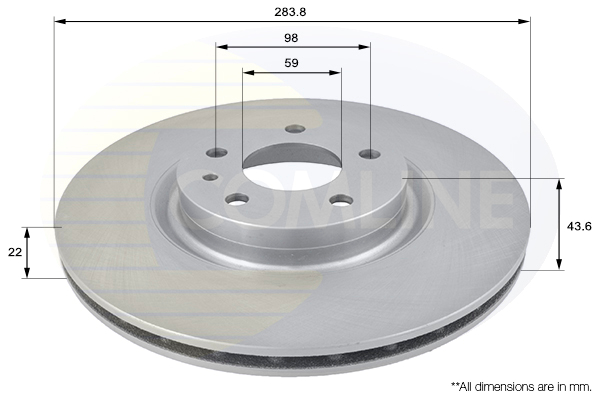 Partea de montare: punte fataÎnaltime [mm]: 43,6Tip disc frâna: ventilat interior ->Grosime disc frâna [mm]: 22 ->Grosime minima [mm]: 20,2Numar pistoane: 1 ->Diametru exterior [mm]: 284Numar gauri: 5 ->Diametru de centrare [mm]: 59Asezare gauri Ø [mm]: 98Suprafata: acoperit (cu un strat protector)