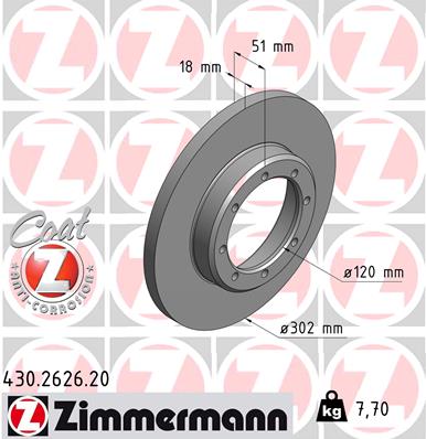 Disc frana OPEL MOVANO B platou / sasiu (X62) 2.3 CDTI RWD (EV, HV, UV) diesel 131 cai ZIMMERMANN 430.2626.20