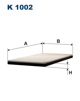Tip filtru: Filtru de particuleVersiunea cu cărbune activ (nr. art.): K 1002A ->Lungime [mm]: 342 ->Latime [mm]: 195Înaltime [mm]: 19