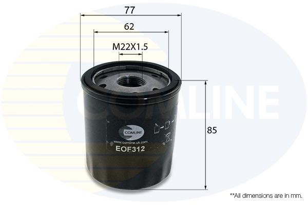 Înaltime [mm]: 85 ->Dimensiune filet: M22x1.5 ->Diametru exterior [mm]: 77Tip filtru: Filtru insurubabil ->Diametru interior 1 [mm]: 62