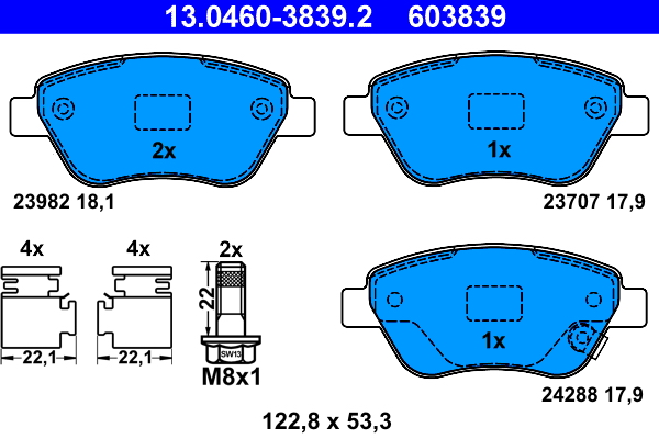 pentru diametru disc frana [mm]: 257Partea de montare: punte fata ->Latime [mm]: 122,8Înaltime [mm]: 53,3 ->Grosime 1 [mm]: 17,9 ->Grosime 2 [mm]: 18,1Contact indicator uzura: cu avertizare acustica uzuraNumărul indicatorilor de uzură [per axă]: 1Articol extins/Informatii de extindere: cu acceasoriiArticol completare/Info suplimentar 2: cu suruburi etrierNumarul suruburilor: 2Sistem de frânare: BoschAprobare: E1 90R-01828/972Cod MAPP disponibil