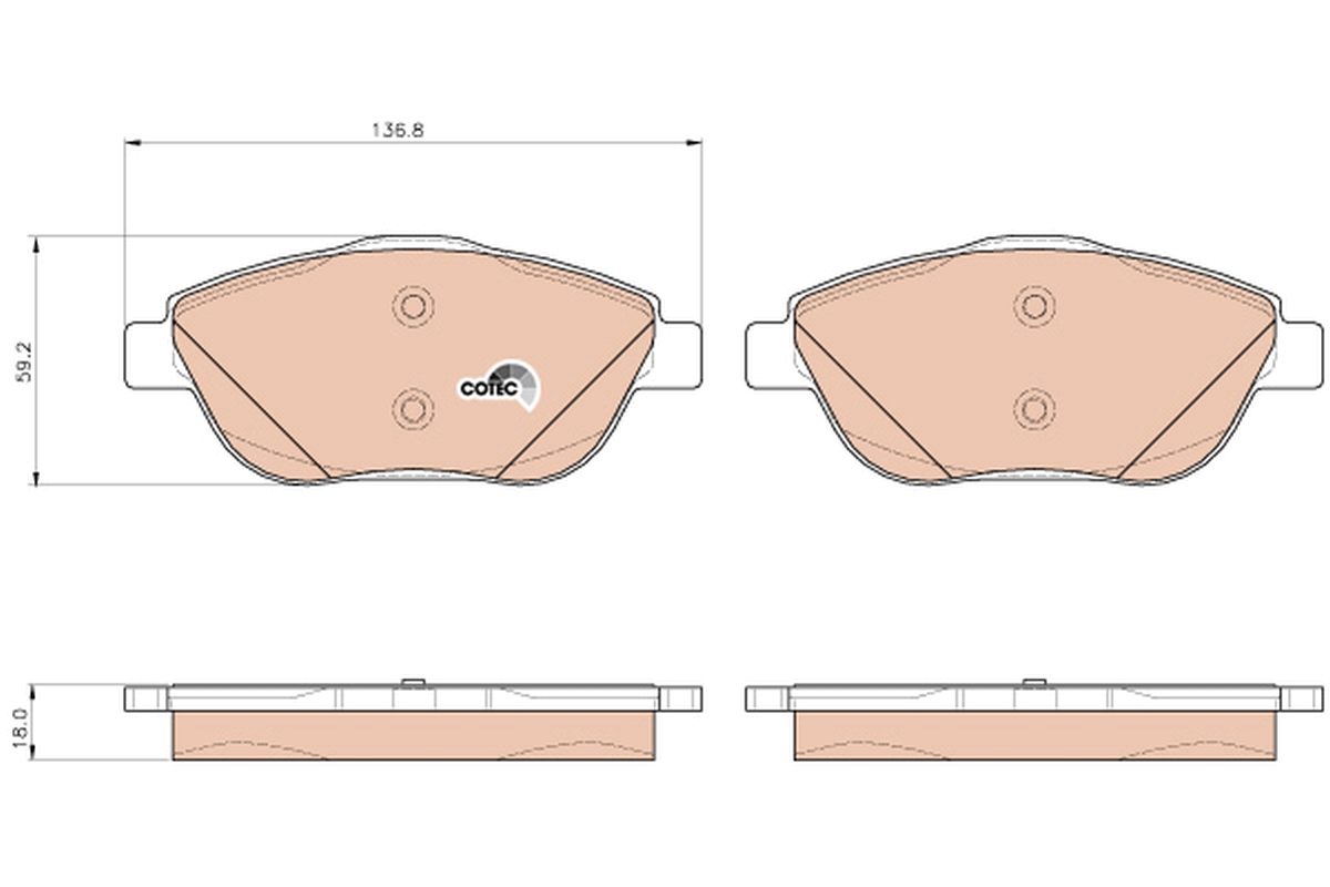 Partea de montare: punte fata ->Latime [mm]: 136,8Înaltime [mm]: 59,3 ->Grosime [mm]: 18,5Contact indicator uzura: exclus indicator avertizareRestrictiile producatorului: BOSCHAprobare: E9 90R – 01107/2663