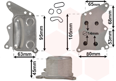 Material element radiator: aluminiuArticol extins/Informatii de extindere: fără carcasă pentru filtrul de ulei ->Lungime plasă [mm]: 95Lățimea plasei [mm]: 41Adâncimea plasei [mm]: 63Calitate: IR PLUS