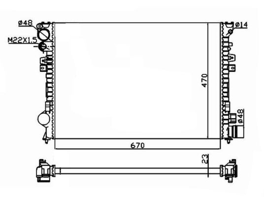 Echipament vehicul: pentru vehicule fara aer conditionatMaterial: aluminiu ->Lungime plasă [mm]: 670Lățimea plasei [mm]: 470Adâncimea plasei [mm]: 23Versiune: AlternativeVarianta radiator: Element radiator cu prindere mecanica