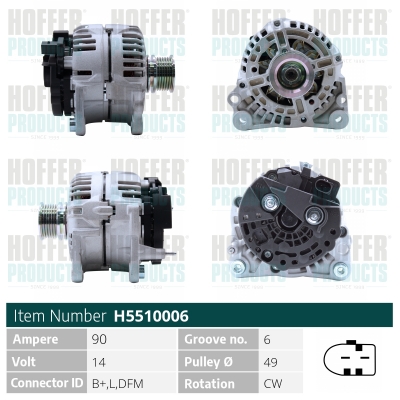 Alternator SKODA ROOMSTER (5J7) 1.9 TDI diesel 101 cai HOFFER H5510006