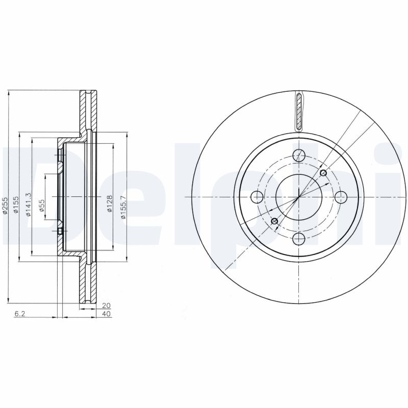 Partea de montare: punte fataTip disc frâna: ventilatNumar gauri: 4Aprobare: E1 90R-02C0074/1603Suprafata: unsDiametru exterior [mm]: 255Grosime disc frâna [mm]: 20Grosime minima [mm]: 18Diametru de centrare [mm]: 55Înaltime [mm]: 46,2