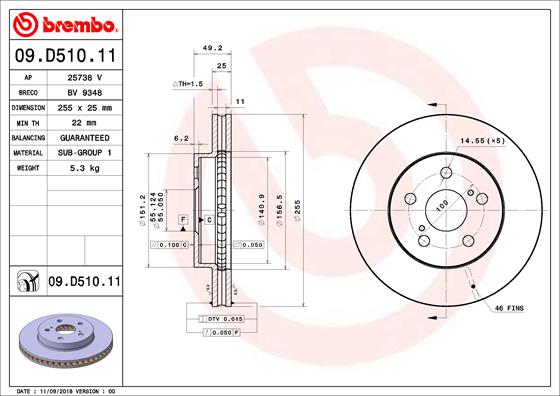 Disc frana TOYOTA PRIUS PHV (_W52_) 1.8 Plug-in Hybrid (ZVW52) benzina/elector 122 cai BREMBO 09.D510.11