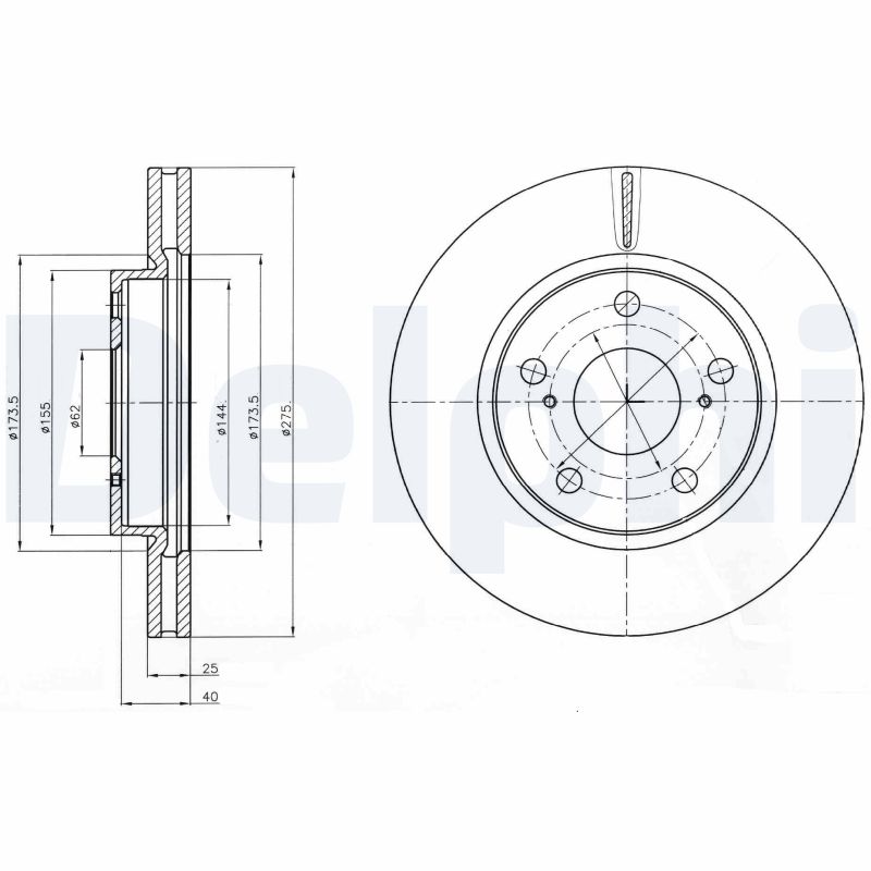 Partea de montare: punte fatapentru codul seriei de modele: Prius AlphaTip disc frâna: ventilatNumar gauri: 5Aprobare: E1 90R-02C0957/2551Suprafata: unsDiametru exterior [mm]: 275Grosime disc frâna [mm]: 25Grosime minima [mm]: 22Diametru de centrare [mm]: 62Înaltime [mm]: 46,3