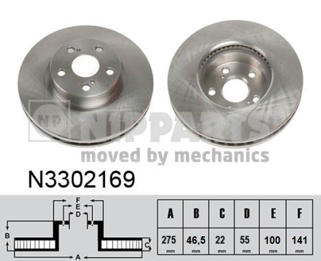 Disc frana TOYOTA VERSO S (_P12_) 1.4 D4-D (NLP121_, NLP121R) diesel 90 cai NIPPARTS N3302169