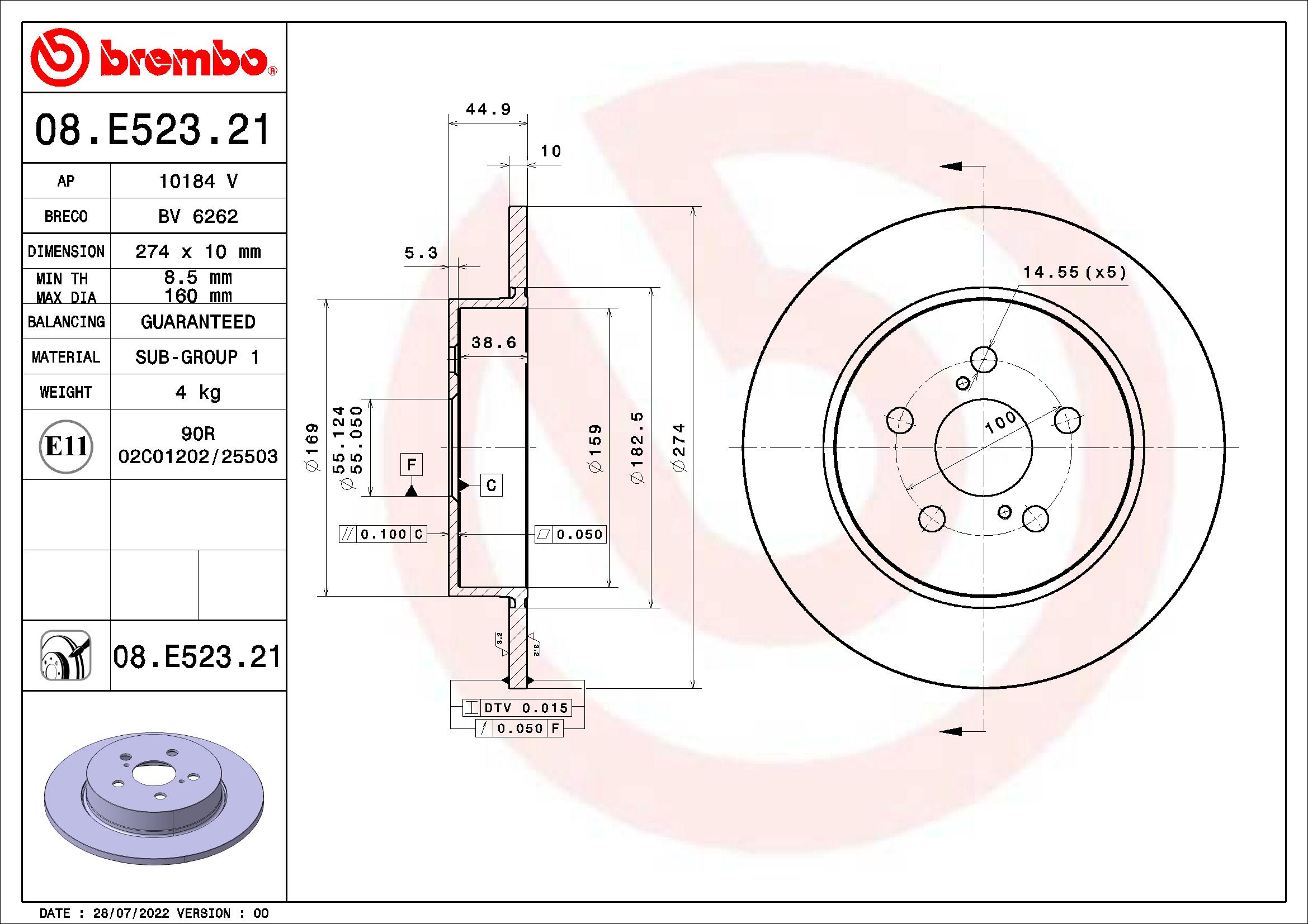 Disc frana TOYOTA YARIS (_P21_, _PA1_, _PH1_) 1.5 Hybrid (MXPH10, MXPH11) benzina/elector 116 cai BREMBO 08.E523.21